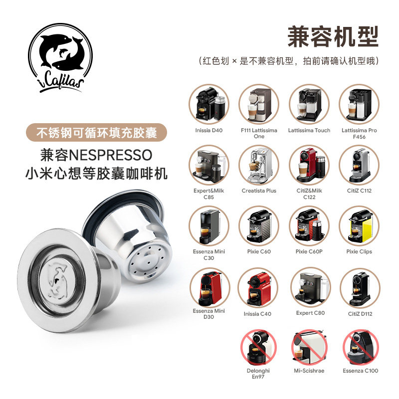 高油脂不锈钢胶囊咖啡壳可重复使用兼容小米心想 nespresso雀巢