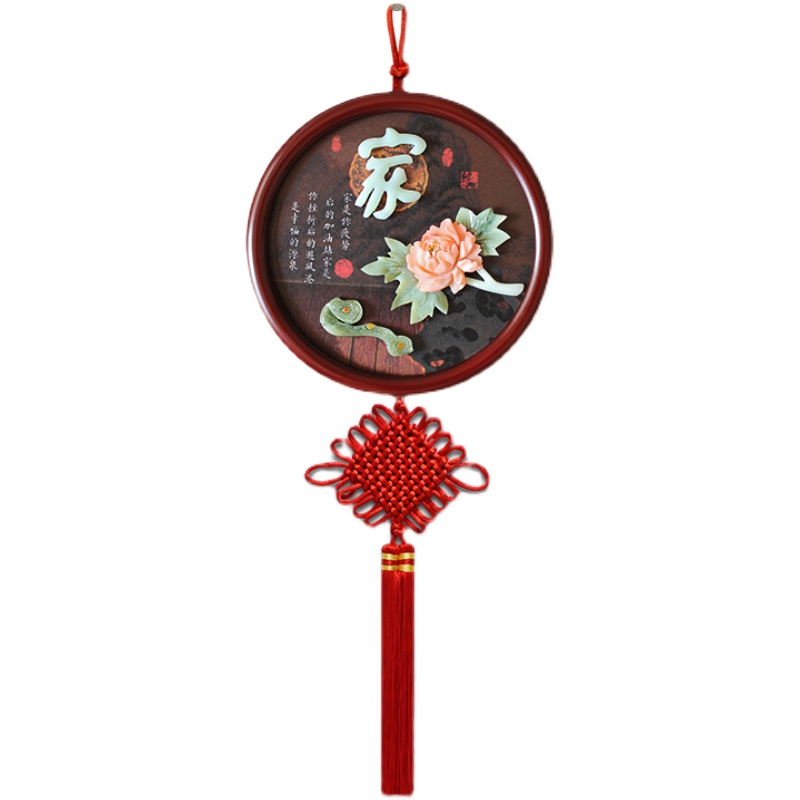 玉雕挂画入户玄关挂饰新中式客厅墙面装饰挂件福字中国结墙上壁挂