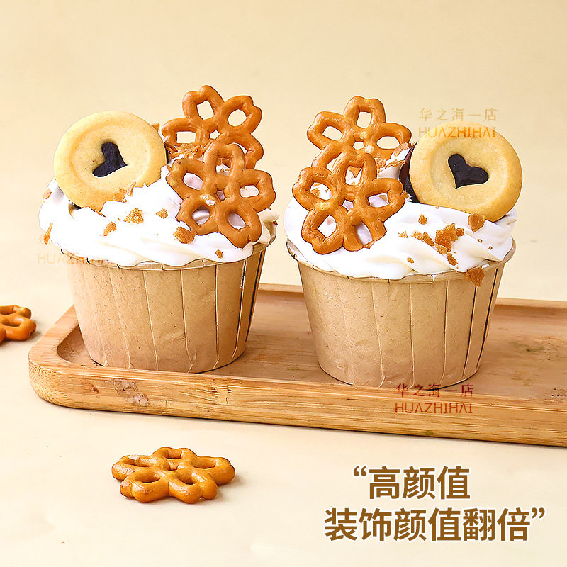 碱水结饼干蛋糕装饰小花朵网格造型五瓣花可食用纸杯甜品烘焙摆件