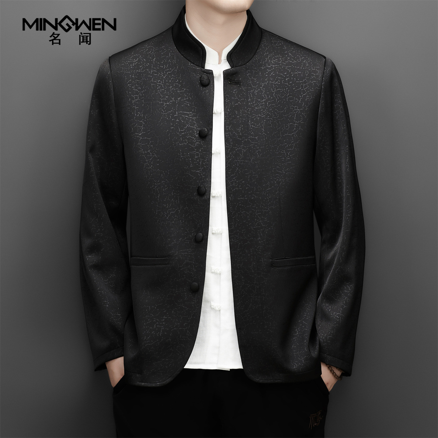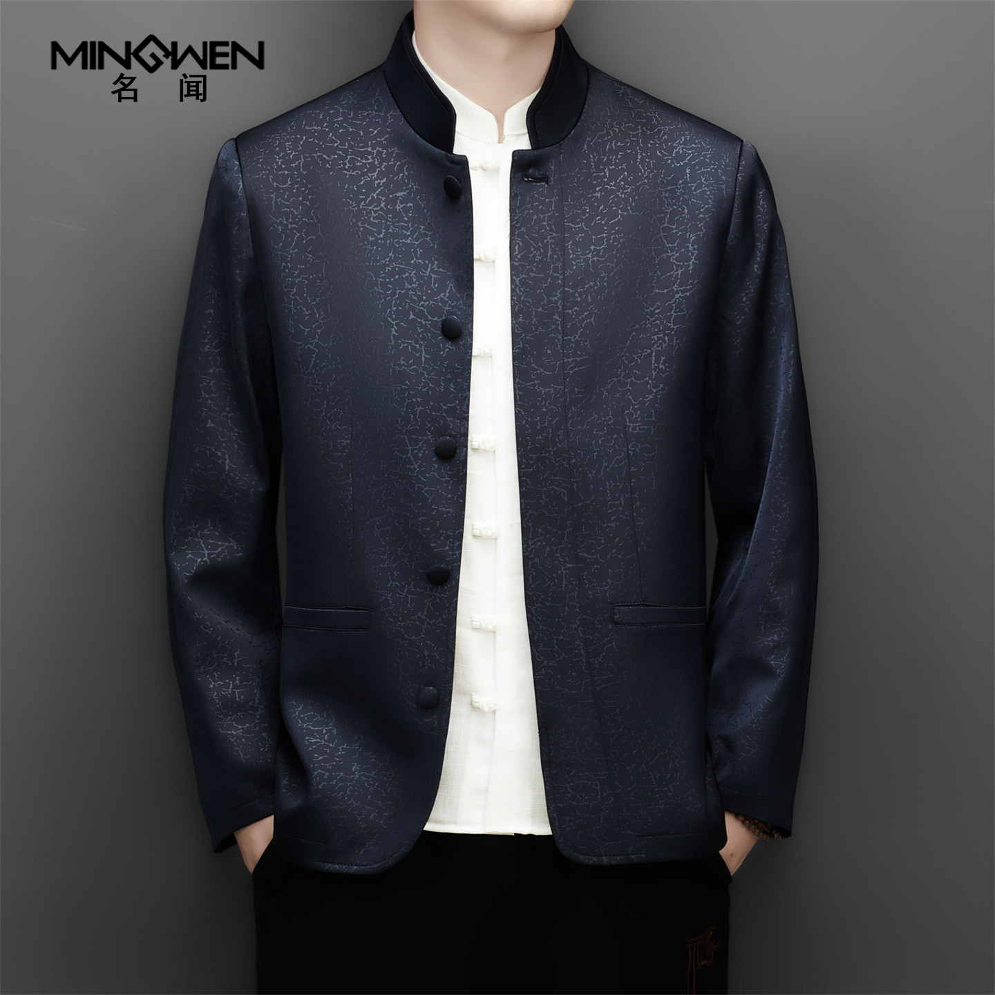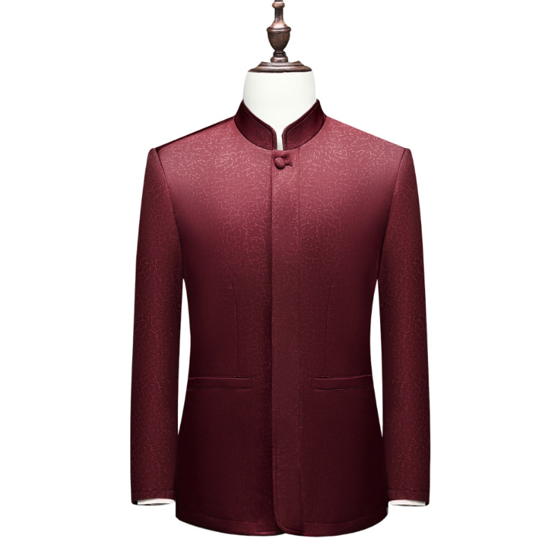 立领唐装男春秋季薄款中国风印花新中式中老年爸爸中山装西服外套