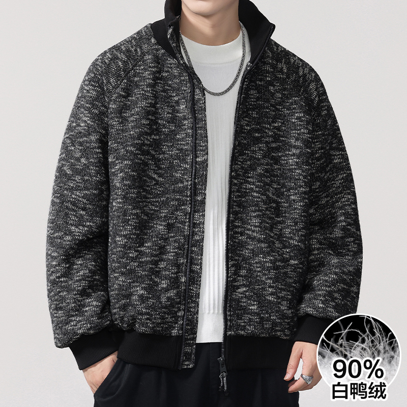 罗蒙针织羽绒服男士秋冬季2025新款潮流保暖毛衣外套男士冬装上衣