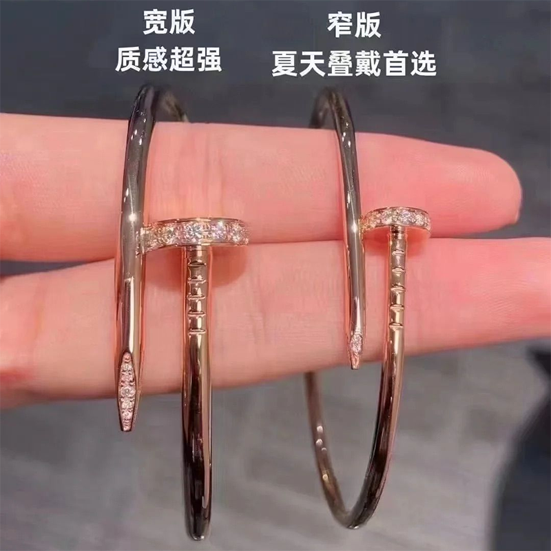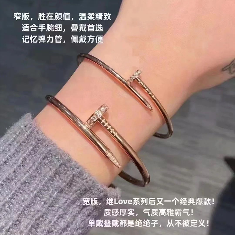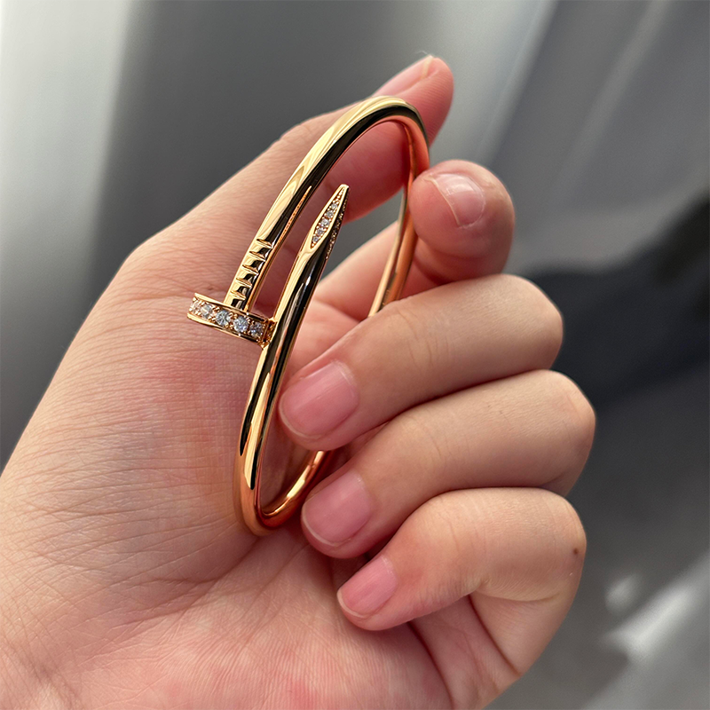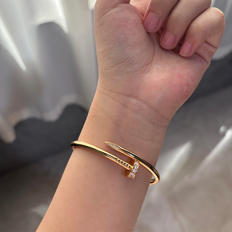 轻奢钉子手镯男女款18K玫瑰金不掉色镶钻情侣手环礼物黄金白金