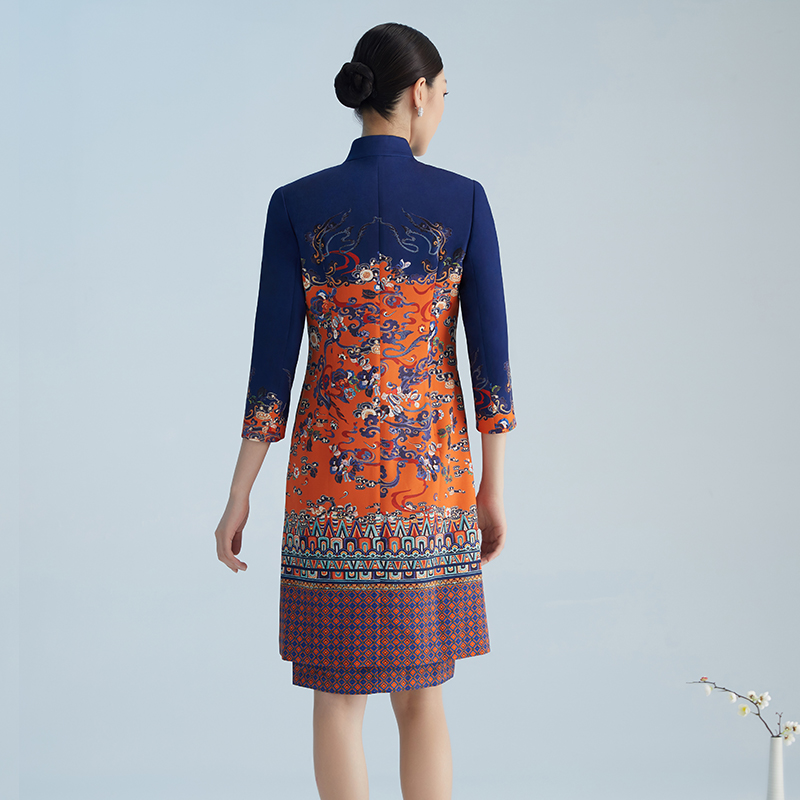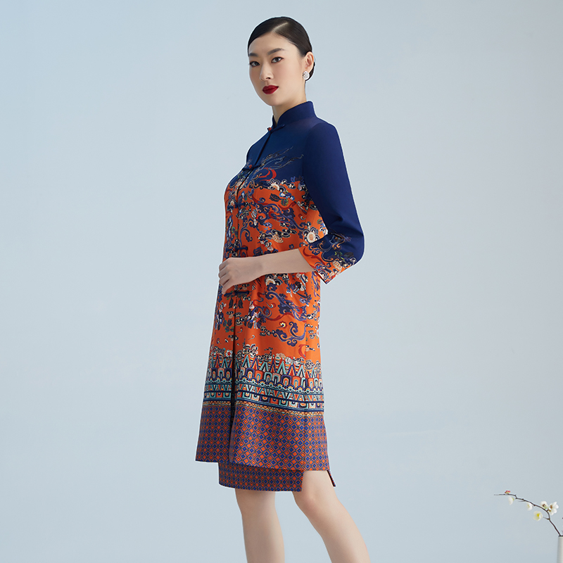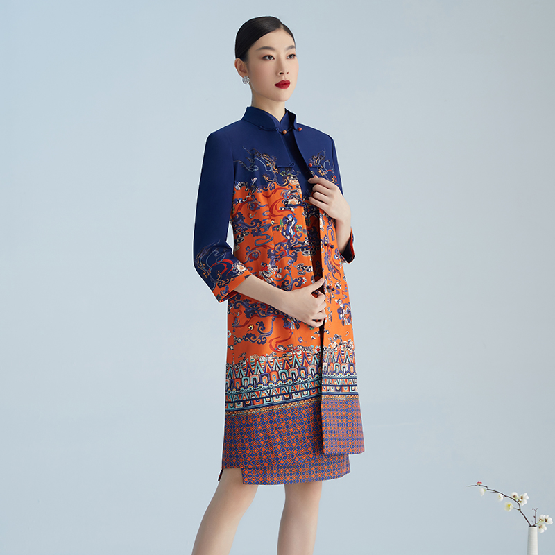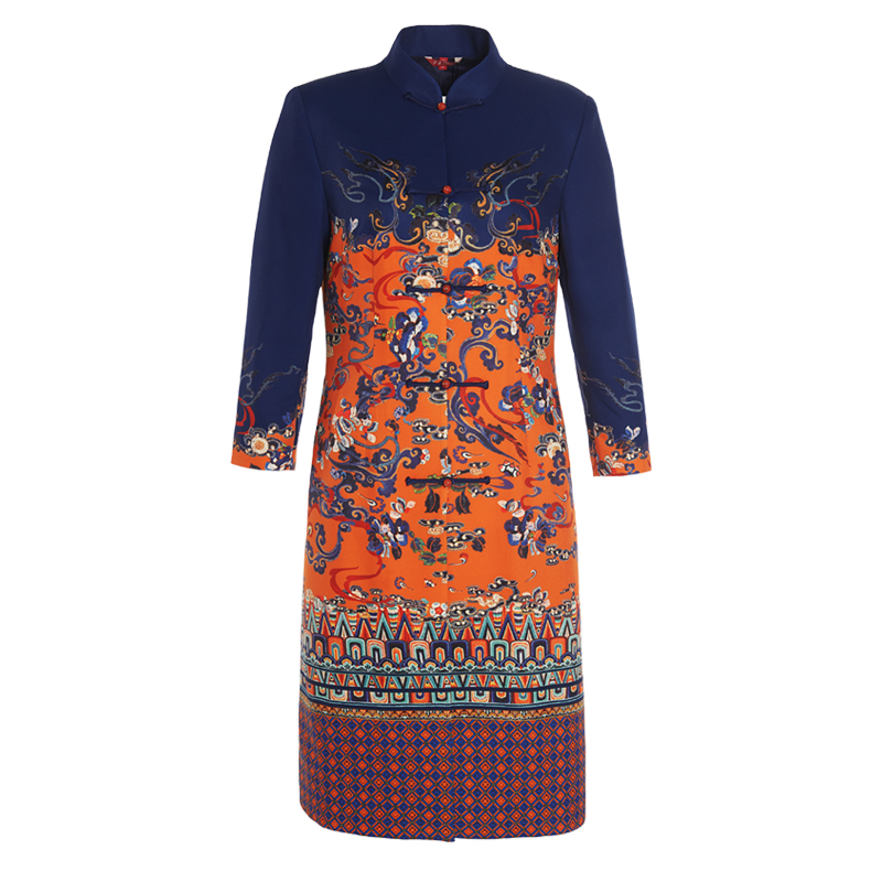 木真了改良唐装旗袍外搭女装新品复古祥云纹印花时尚风衣外套115