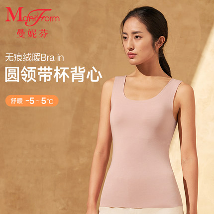 曼妮芬中厚打底芒果杯暖衣背心 吸湿发热免穿内衣秋衣背心