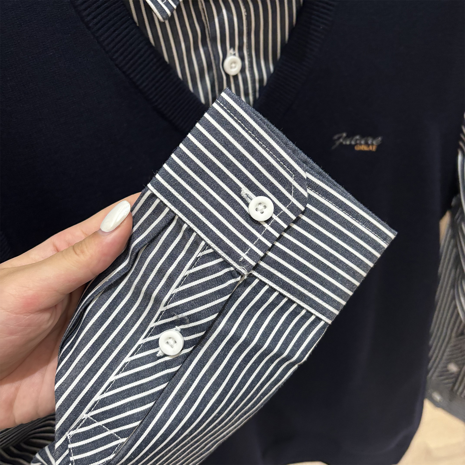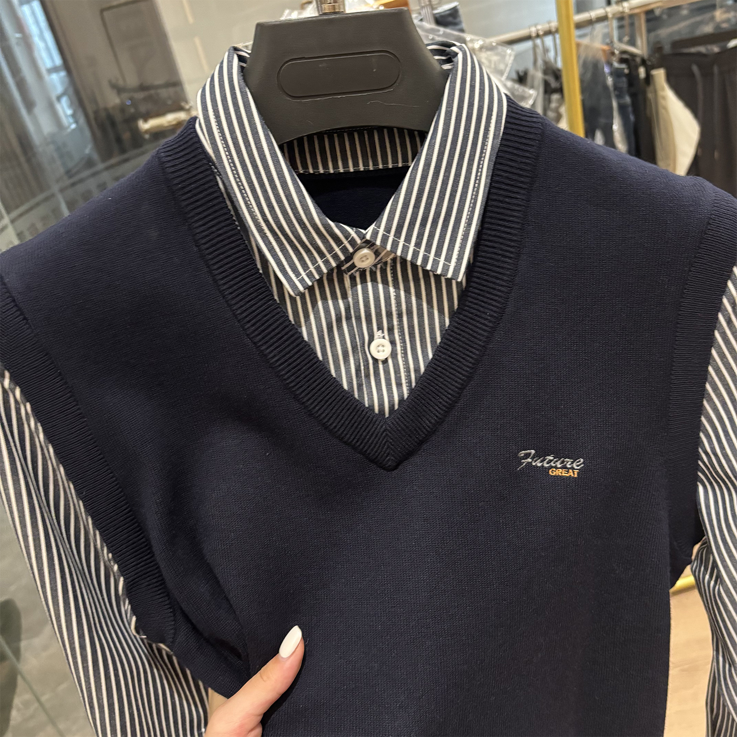 【H家】包芯纱面料!秋季新款男士商务休闲假两件套头打底针织衫