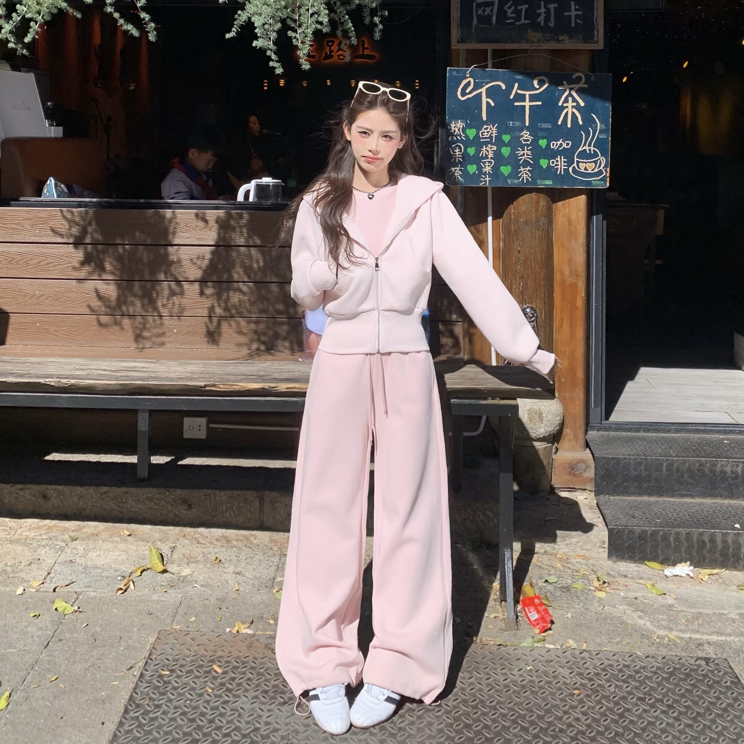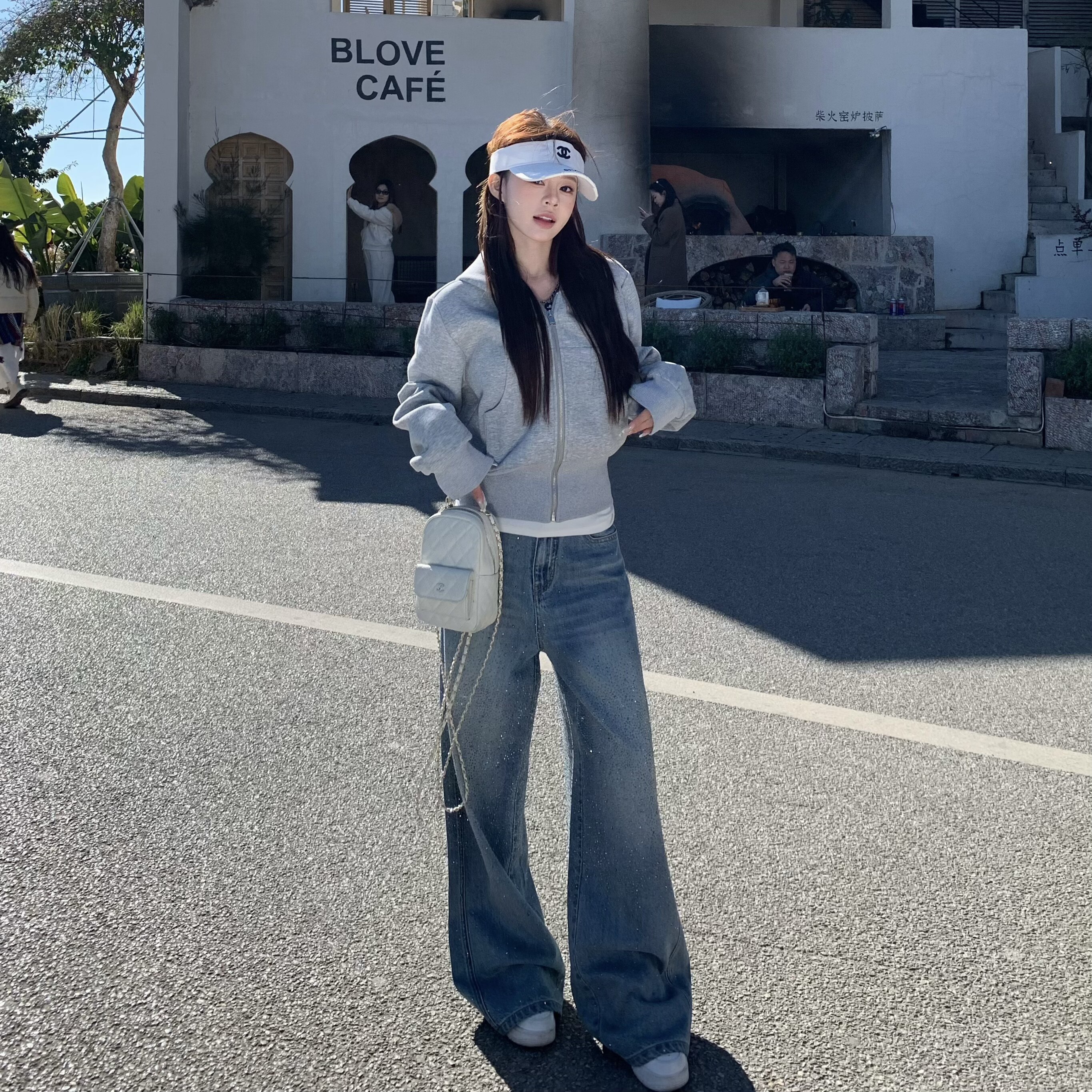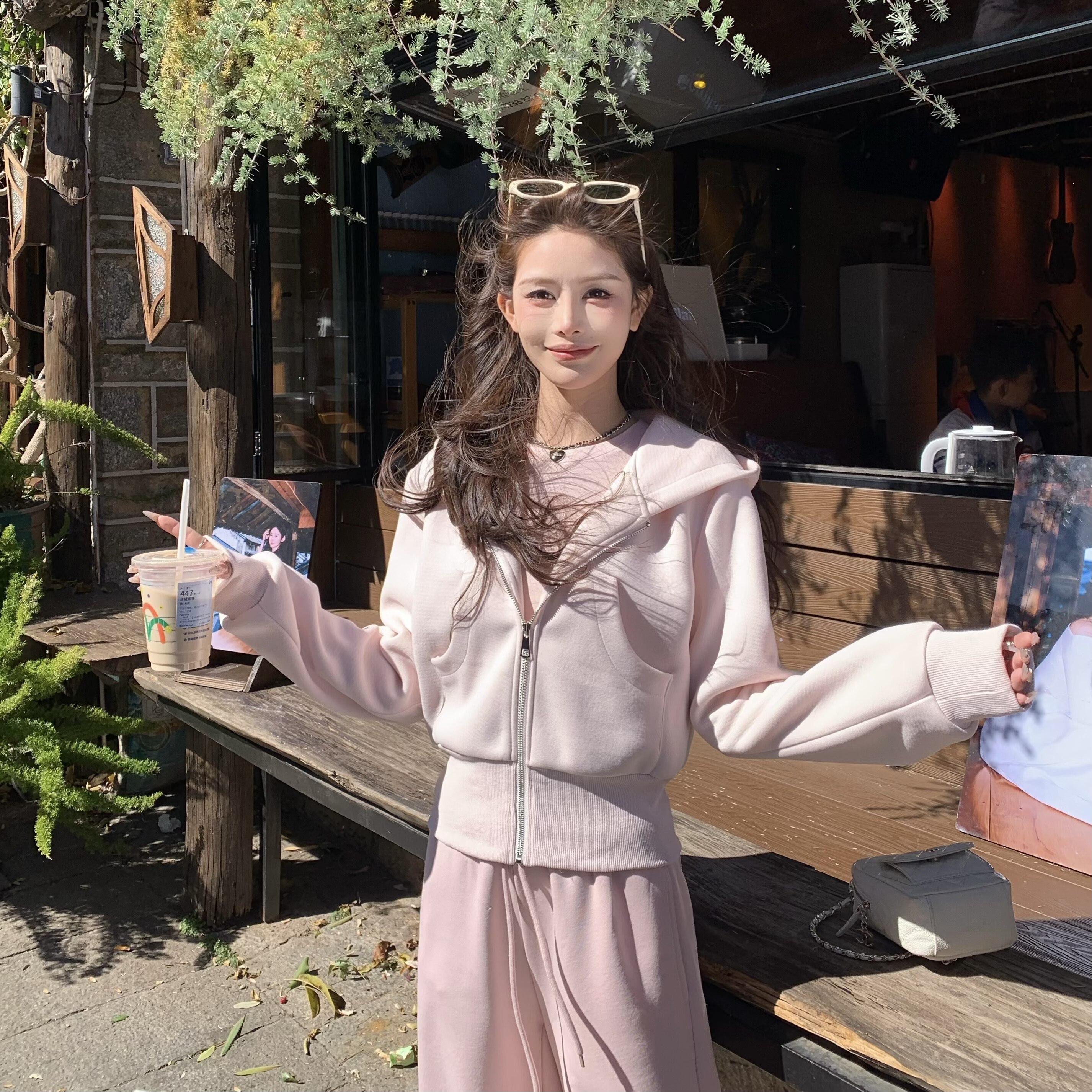 3MER哦哦三妹 韩系慵懒收腰连帽短款开衫卫衣女春季新款拉链外套