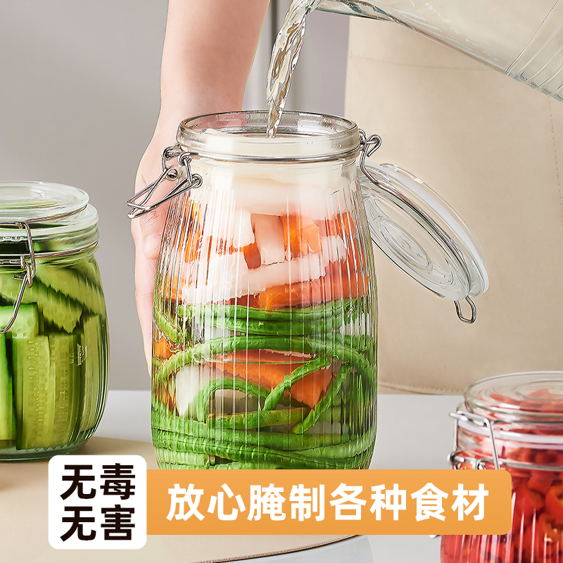 密封罐食品级玻璃瓶子家用腌咸菜泡菜坛子装辣椒酱蜂蜜容器储物罐