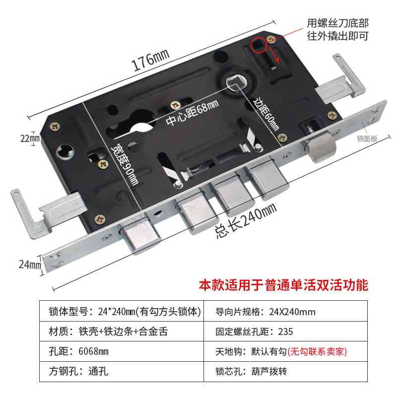 东城润鹏新旧老款式防盗门锁体防盗门老式双单活通用型方圆头全套