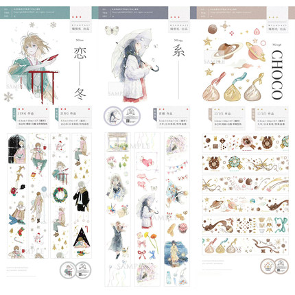 分装miaopaji喵啪叽恋冬 系苜暖choco大年自己印手帐和纸pet胶带