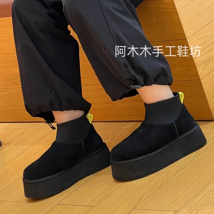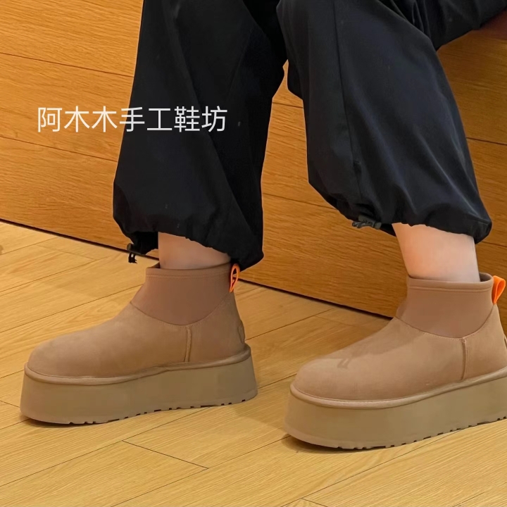 桑坡2025新款mini迪普靴厚底增高雪地靴女皮毛一体加绒加厚短靴冬