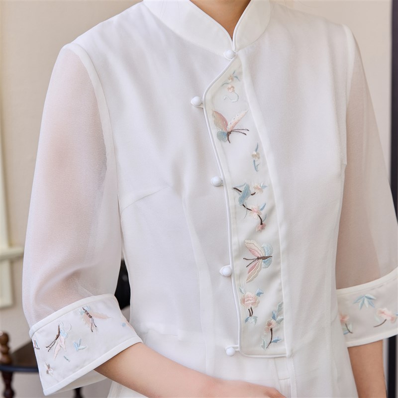 轻国风新款高级禅服新中式两件套上衣女改良唐装盘扣刺绣茶服套装