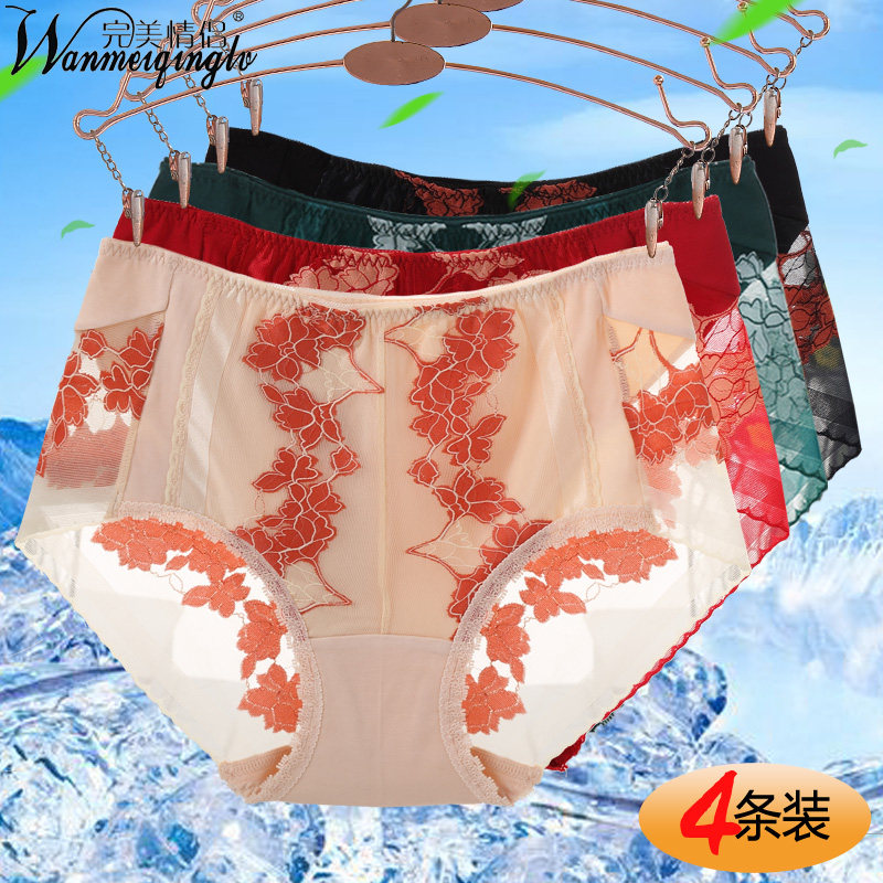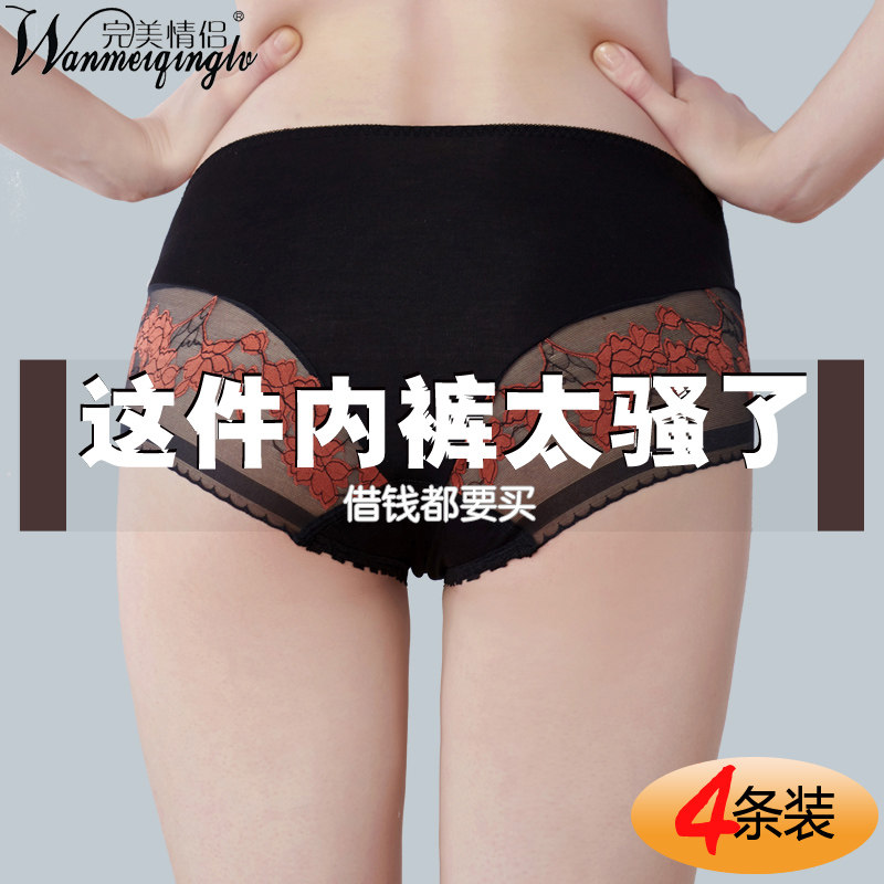完美情侣4条装女士中腰性感包臀内裤 收腹提臀莫代尔大码三角裤