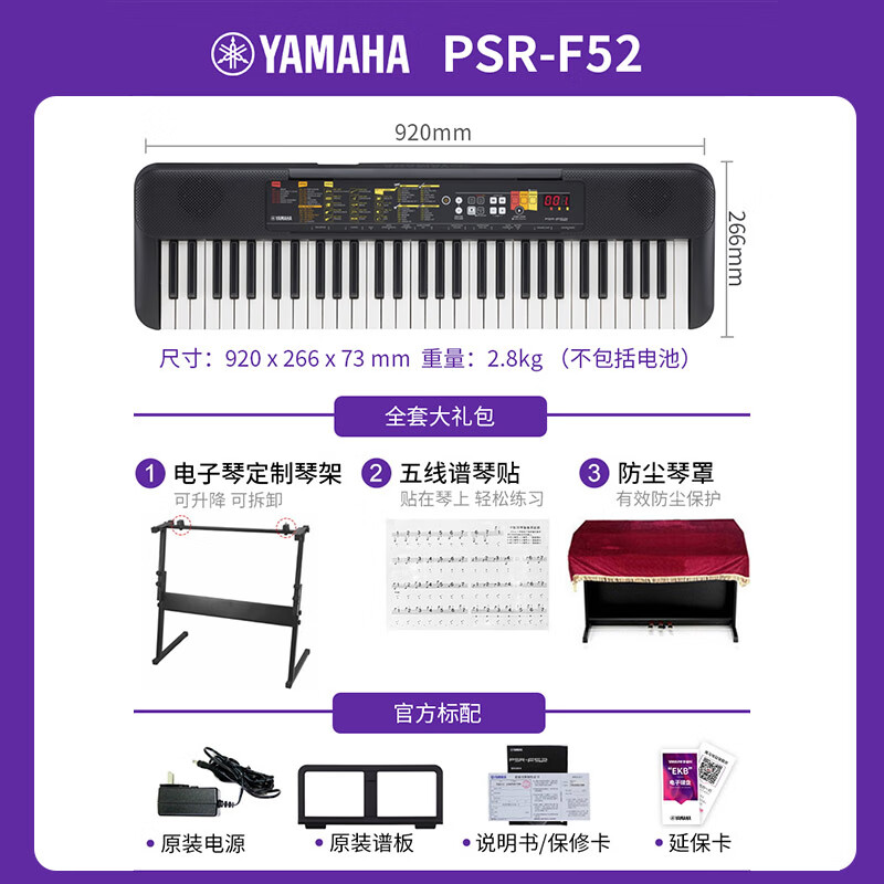 雅马哈电子琴PSR-F52成年人儿童初学者专业幼师教学家用61键便携