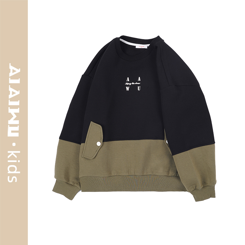 艾艾屋男童上衣春秋潮流新品大童春秋童装圆领拼接套头卫衣TMAD03