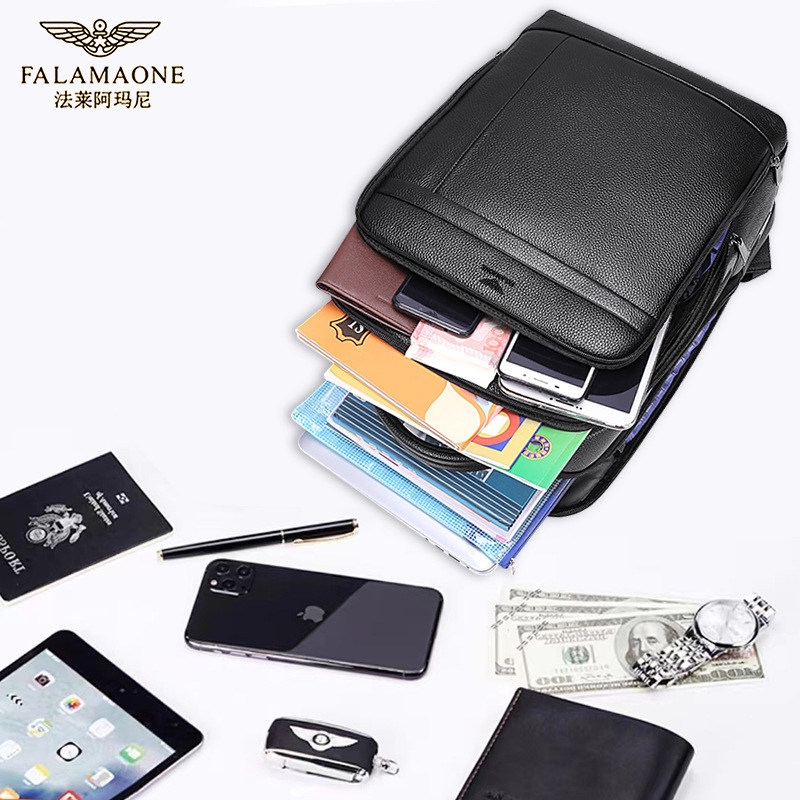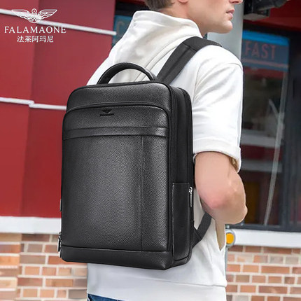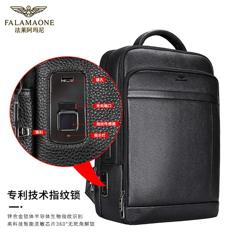 正品法莱阿玛尼双肩包男士商务旅行包真皮大容量指纹背包2023新款