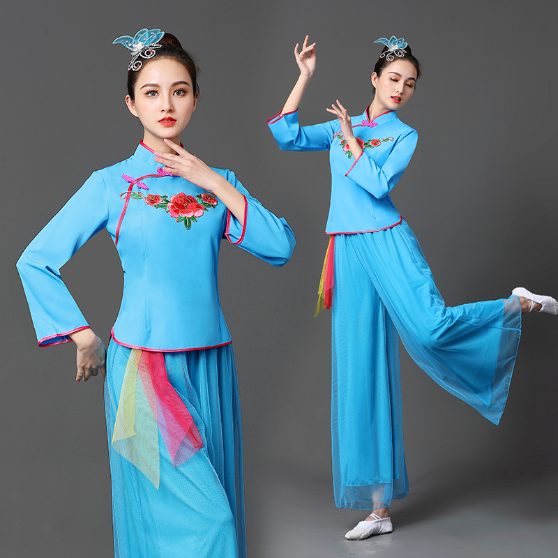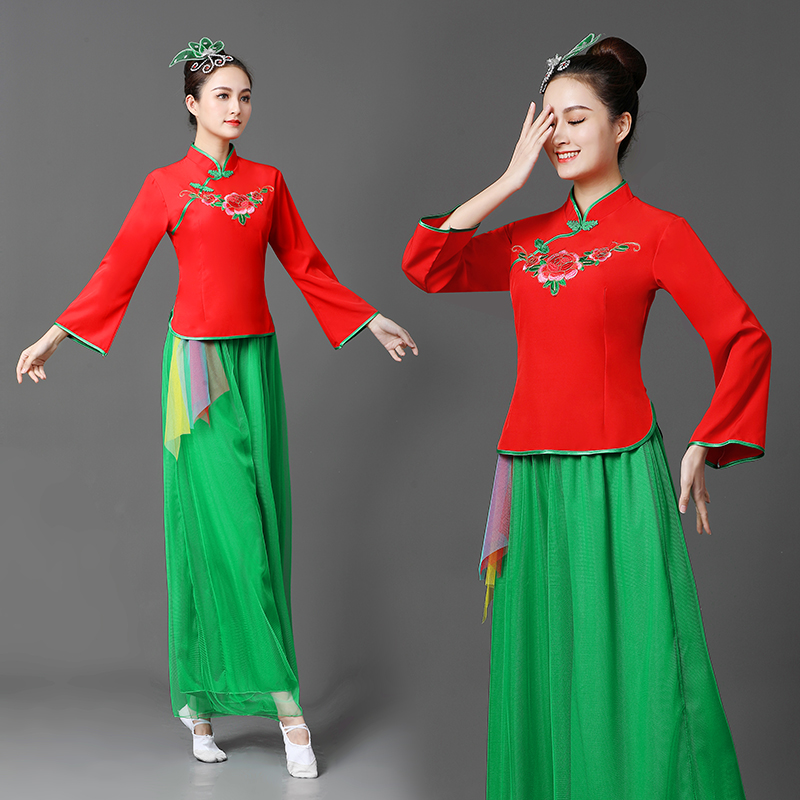 秧歌服新款女套装中老年扇子舞蹈演出服腰鼓队广场舞服装跳舞衣服