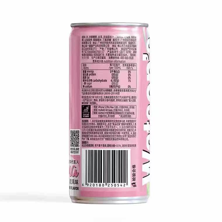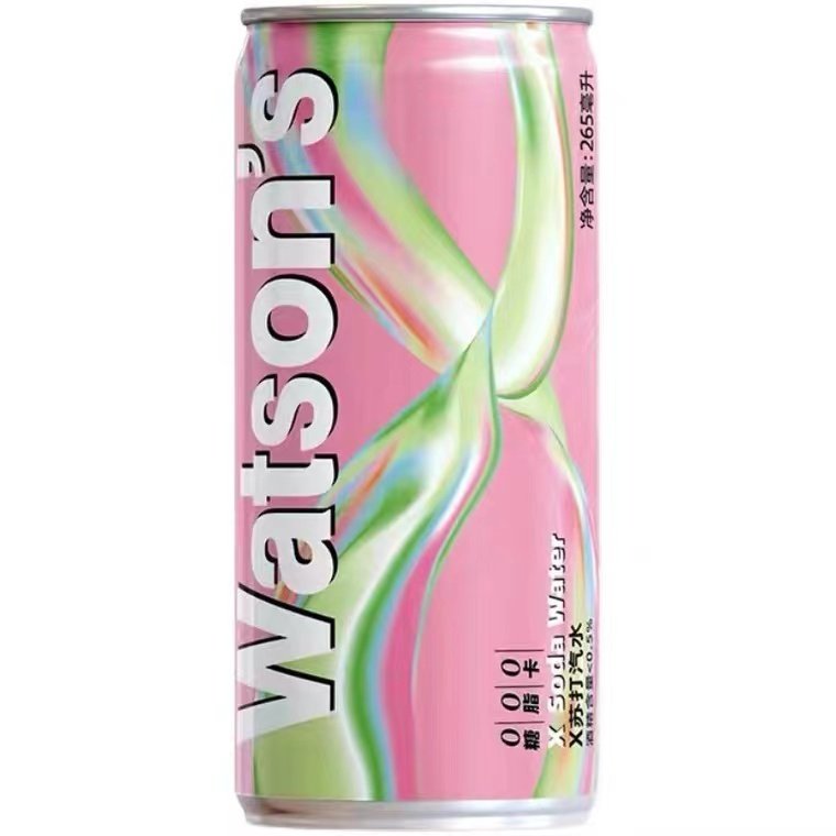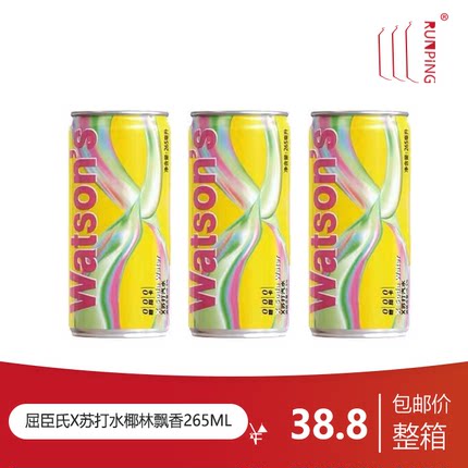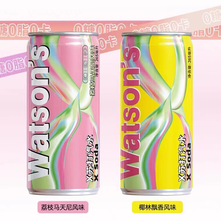 屈臣氏X苏打汽水椰林飘香风味265ml罐装荔枝马天尼苏打气泡水