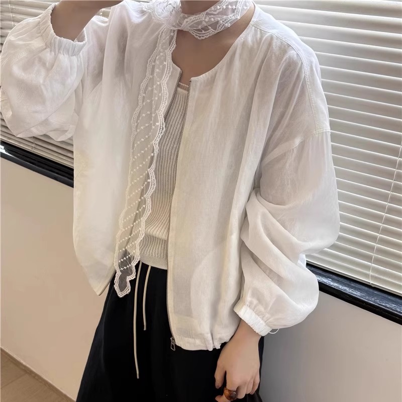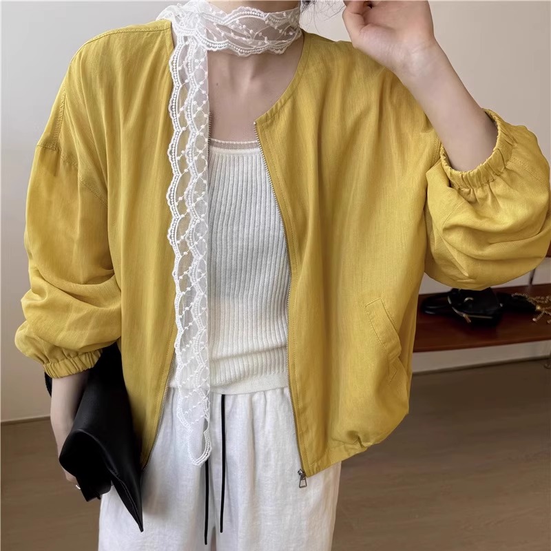 亚麻圆领短款外套女2025早秋新款宽松时尚减龄洋气拉链夹克上衣潮