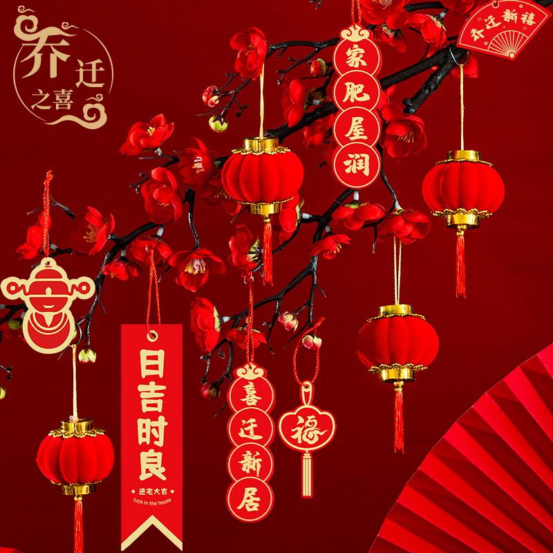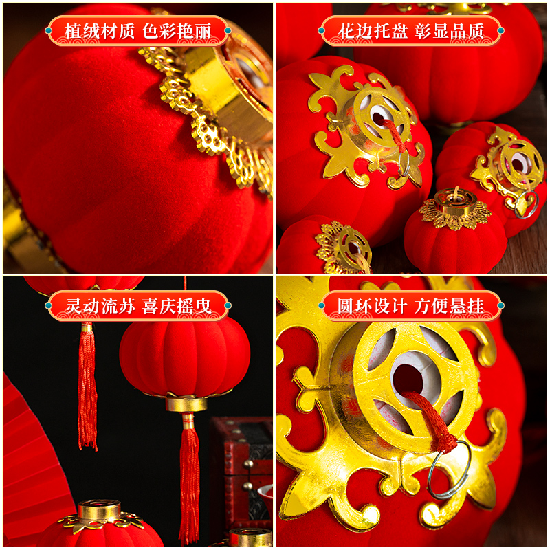 红灯笼挂饰节日室内户外树上装饰用品结婚乔迁盆景植绒喜庆小挂件