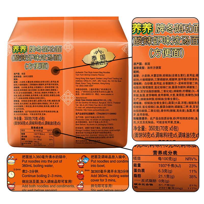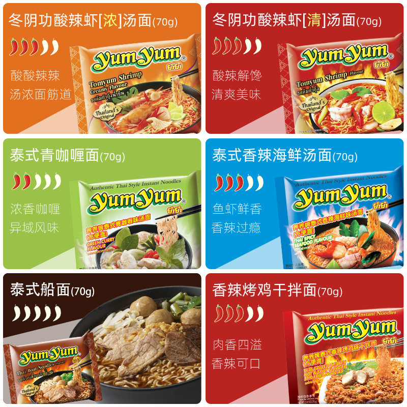泰国进口养养牌yumyum冬阴功方便面海鲜汤面酸辣浓汤速食泡面夜宵