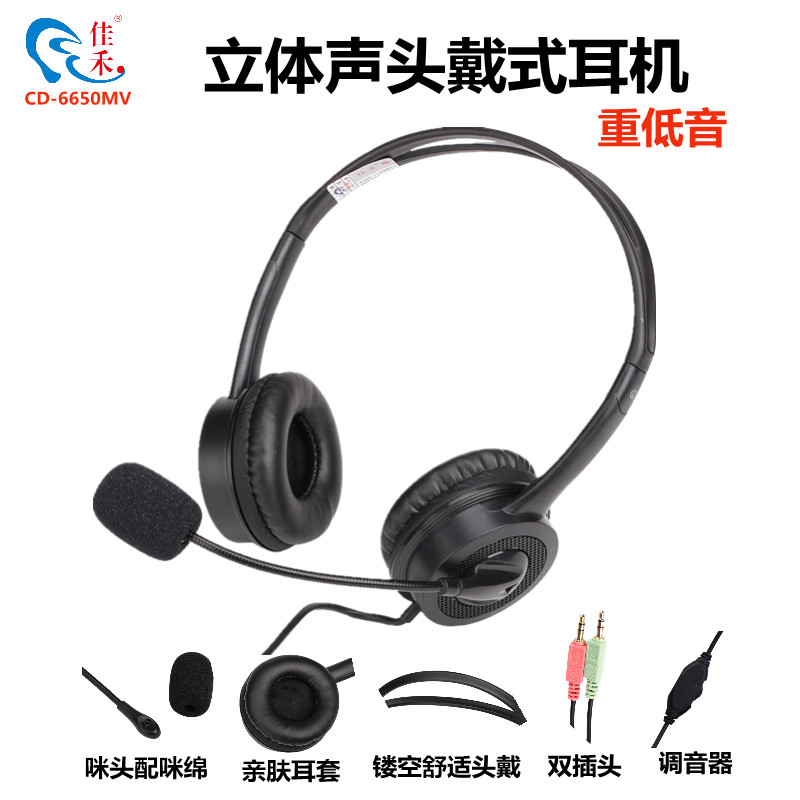 佳禾儿童上网课英语听说专用耳机笔记本台式电脑通用头戴式带麦有线中小学生录音人机对话用耳麦学习轻便6650