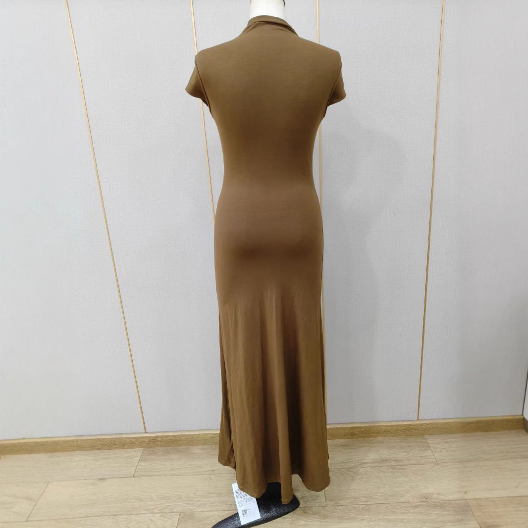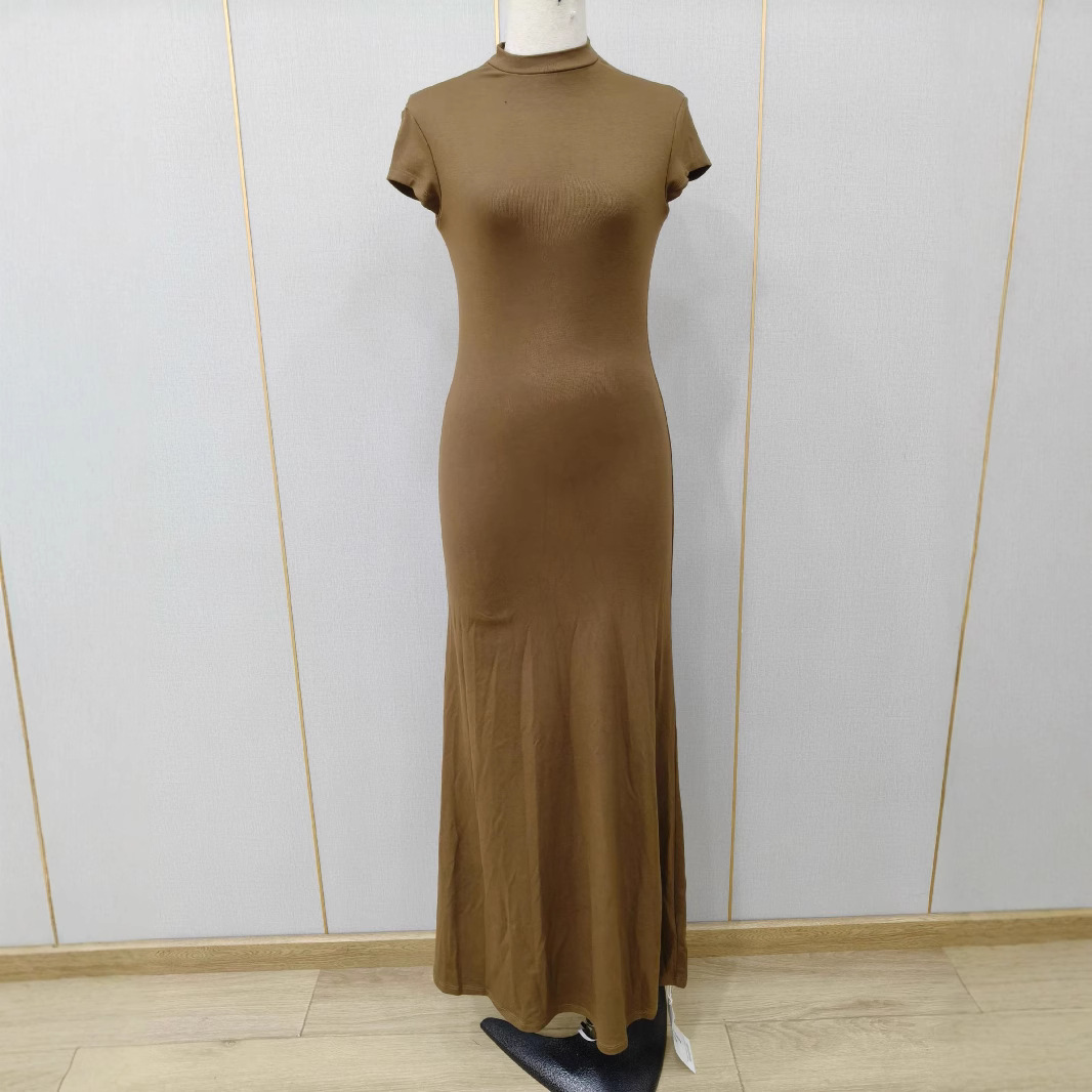 夏季新款高级简约中领连衣裙女超好看性感修身显瘦短袖包臀长裙