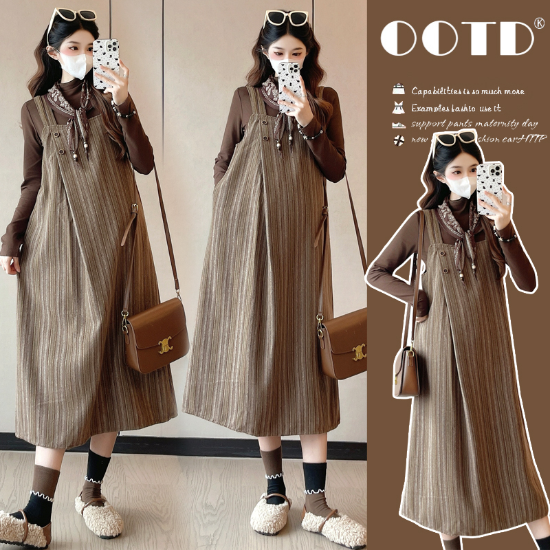 2025秋冬季新款孕妇装连衣裙韩版简约宽松大码两件套时尚休闲套装