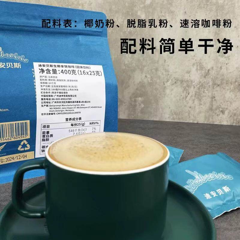 无蔗糖无植脂末马来西亚进口迪安贝斯白咖啡生椰拿铁速溶咖啡粉泡