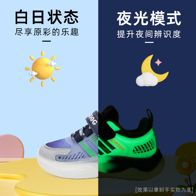 巴布豆童鞋男童运动鞋春秋2025新款网面夜光休闲鞋女孩儿童运动鞋