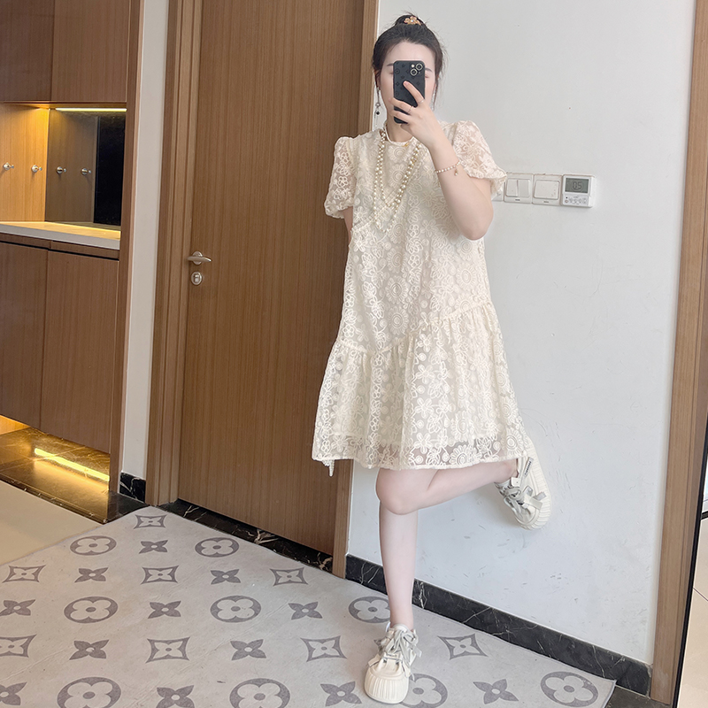法式白色蕾丝拼接连衣裙女夏季2025新款气质洋气时尚裙子大码胖mm