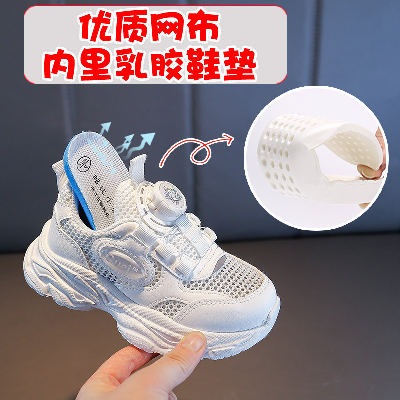 蜡比小星童鞋儿童透气运动鞋男童女童白色网面小白鞋镂空单鞋夏款