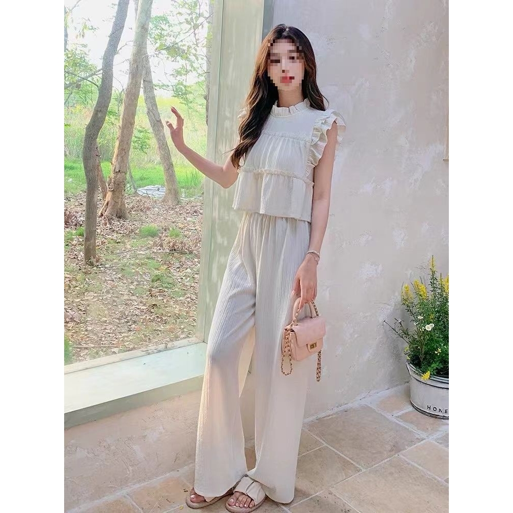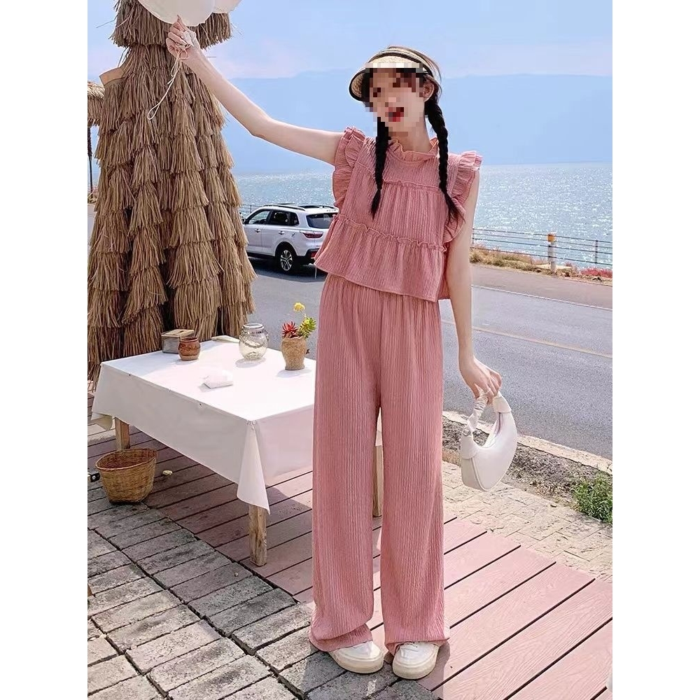 时尚套装女夏季新款无袖休闲上衣宽松阔腿裤长裤两件套