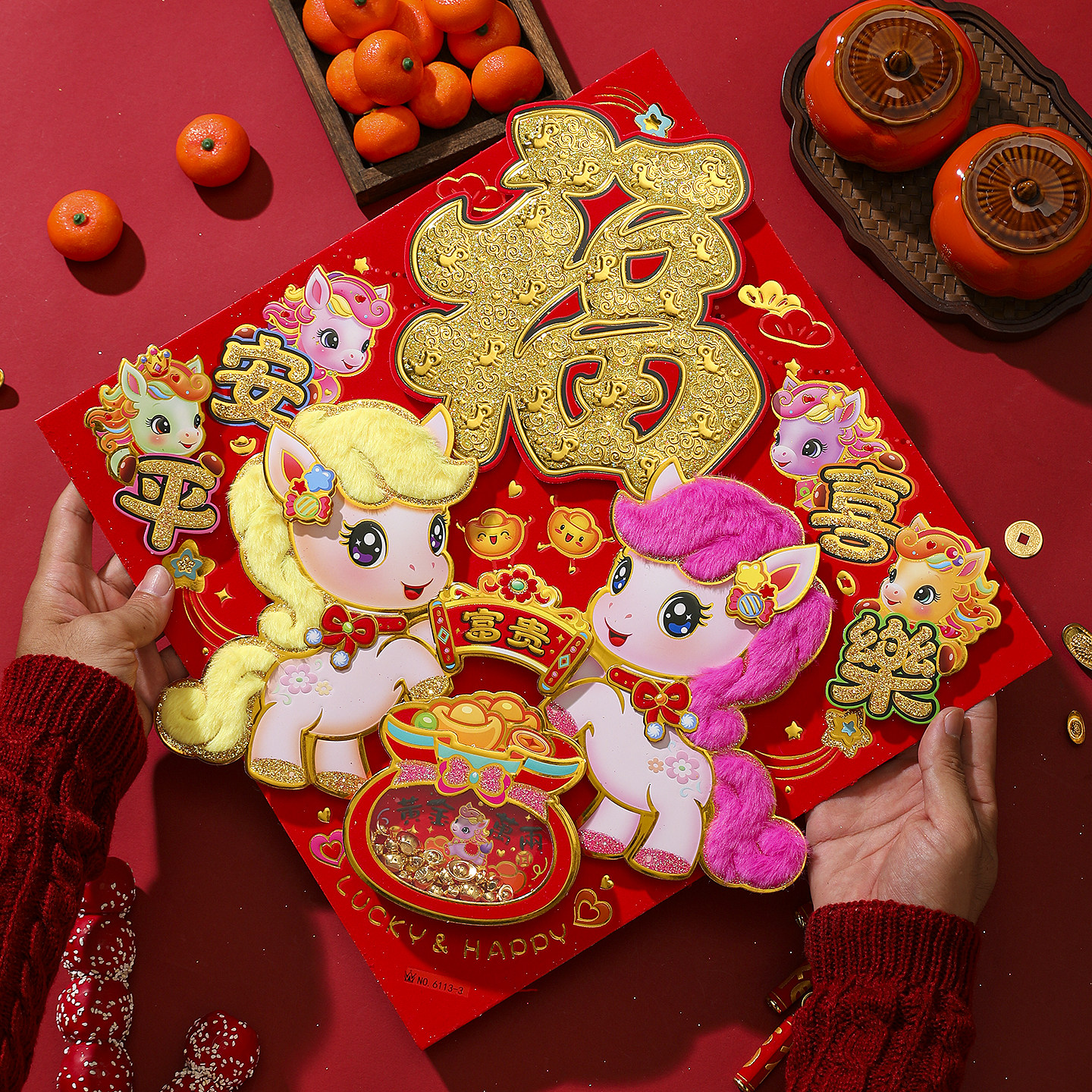 马年2026立体植绒福字门窗贴送胶