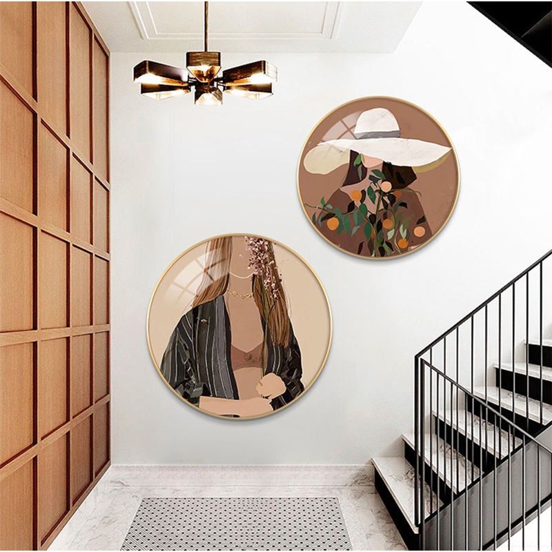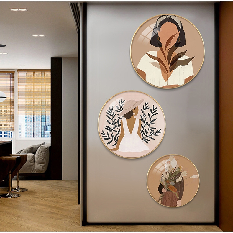 北欧风格客厅装饰画抽象创意个性圆形壁画莫兰迪喷绘油画玄关挂画