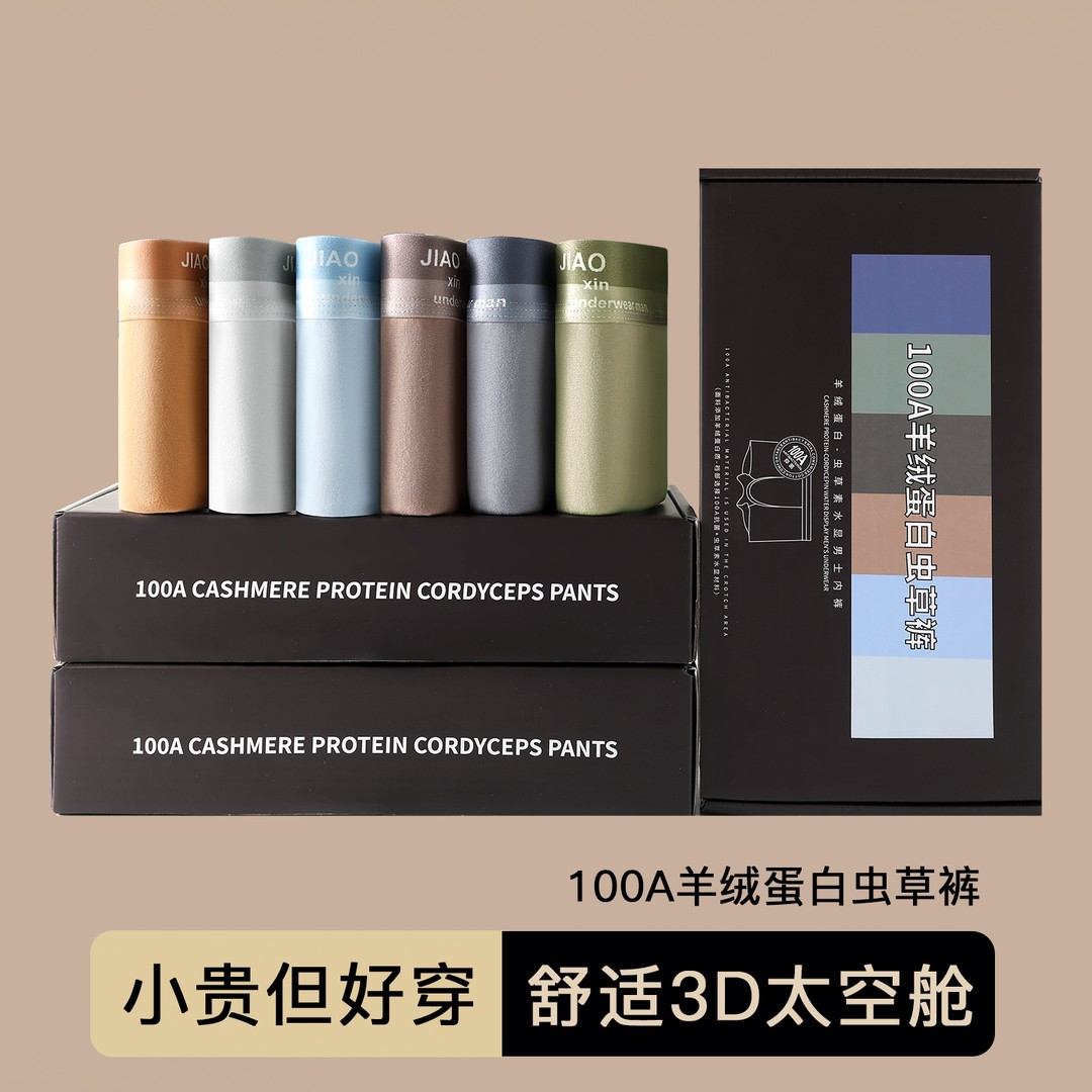 蕉新 100A抑菌羊绒蛋白男士内裤虫草底档琥珀流光透气平角裤礼盒