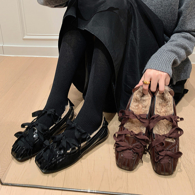 真皮版~芭蕾风运动玛丽珍鞋女内增高加绒毛毛单鞋2025新款平底鞋