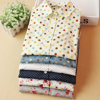 春装新款甜美小清新森女系学院风波点碎花长袖衬衫女装衬衣