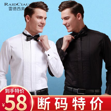 礼服衬衫男长袖法式袖扣燕子领结婚婚礼断码特价领结新郎衬衣男士