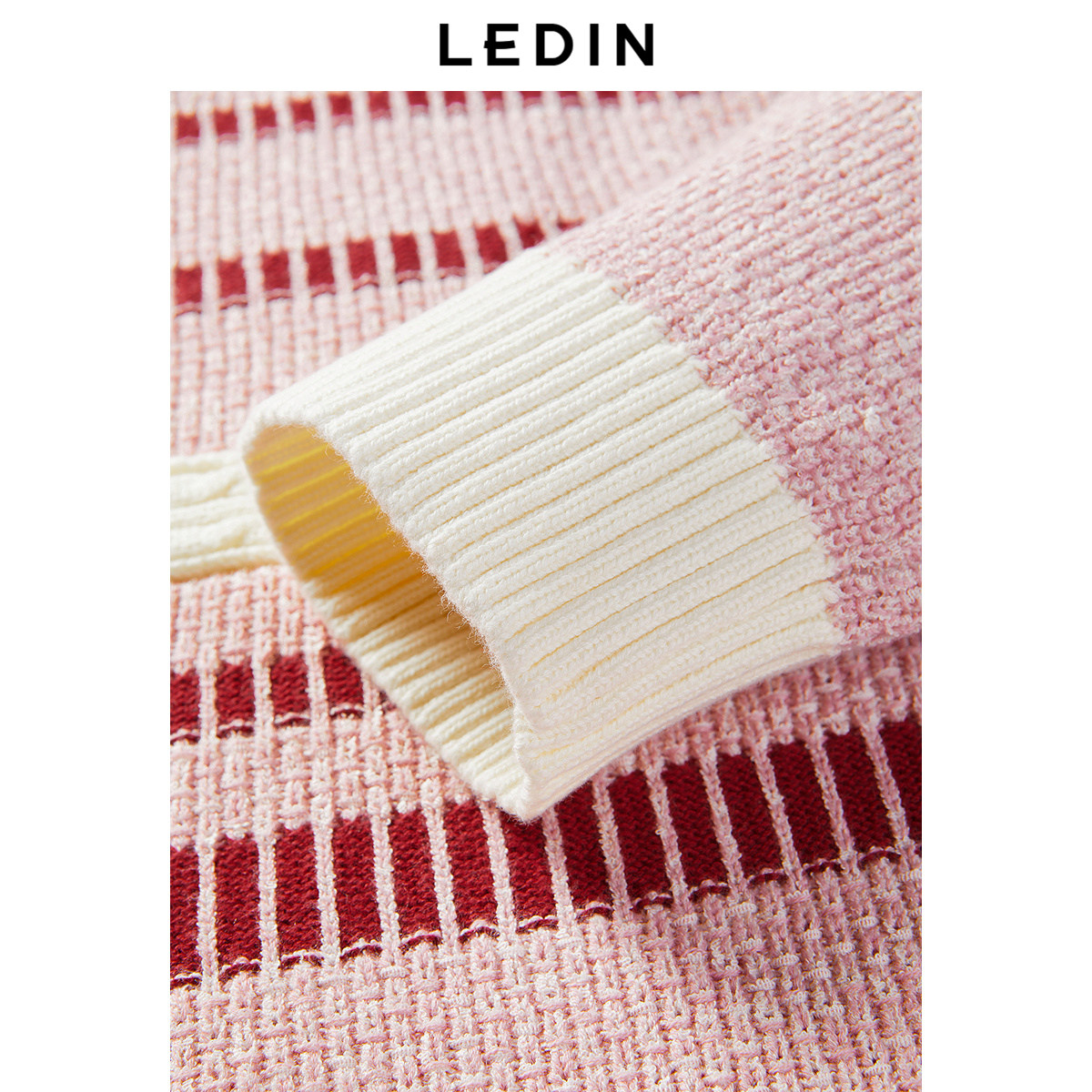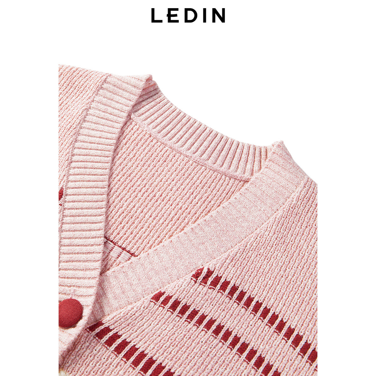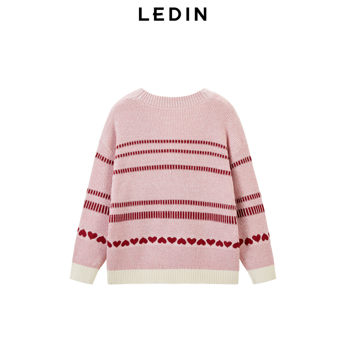 【商场同款】乐町V领彩条线开衫秋季毛衣外套C1EDE3406