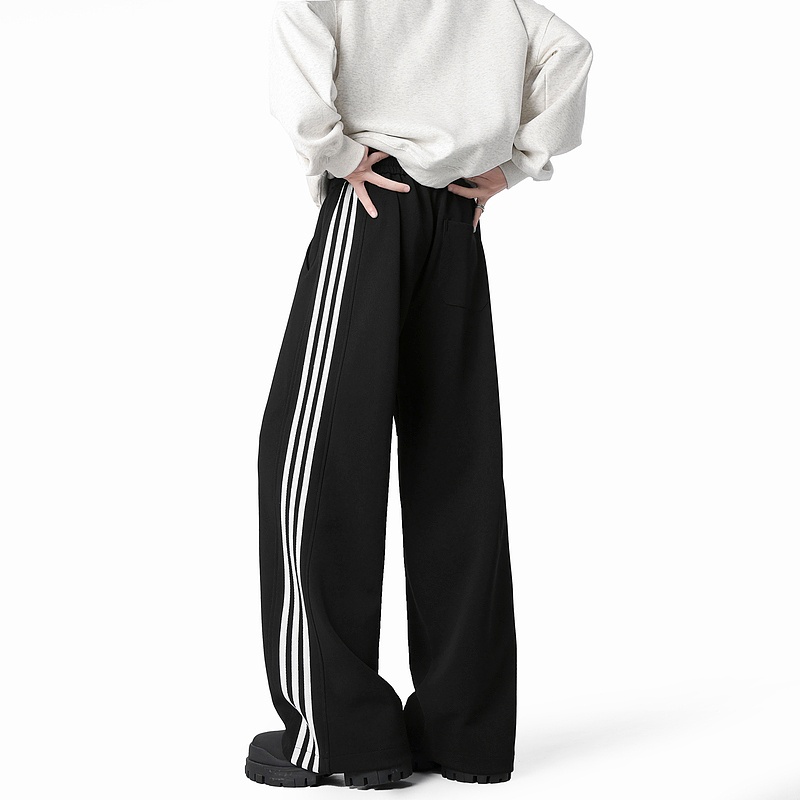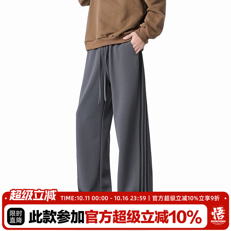 悟空有货复古潮牌条纹垂感运动卫裤男女美式宽松百搭直筒休闲长裤