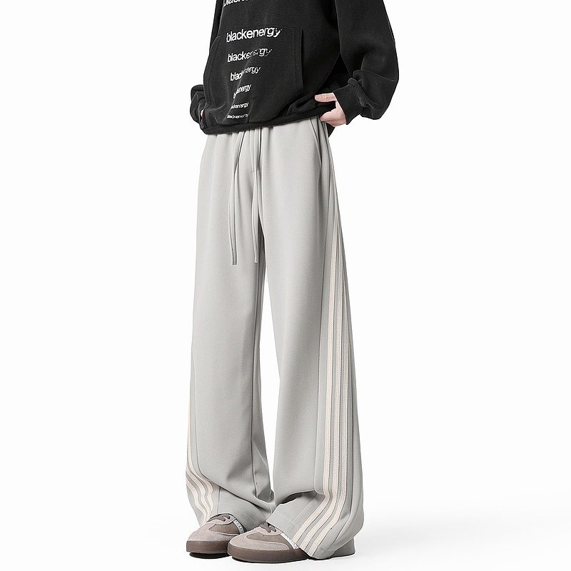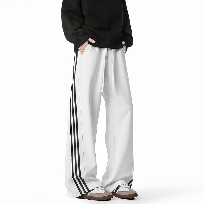 复古潮牌条纹垂感运动卫裤男