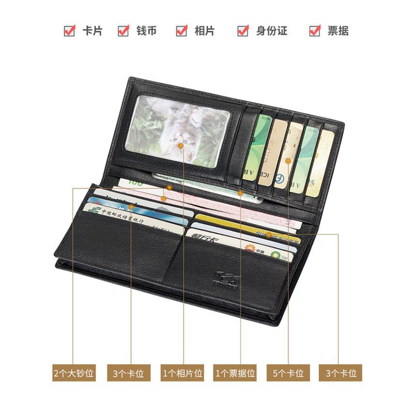 七匹狼男士头层牛皮长款钱包