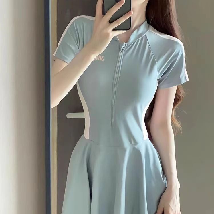 连衣裙式泳衣女款泡温泉高级感2025新款学生保守显瘦平角裤游泳装