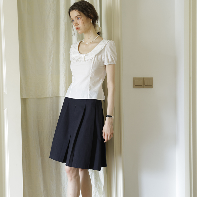 简约复古百搭显瘦遮胯高腰a字型百褶半身裙女春夏新款小个子短裙