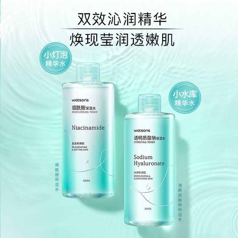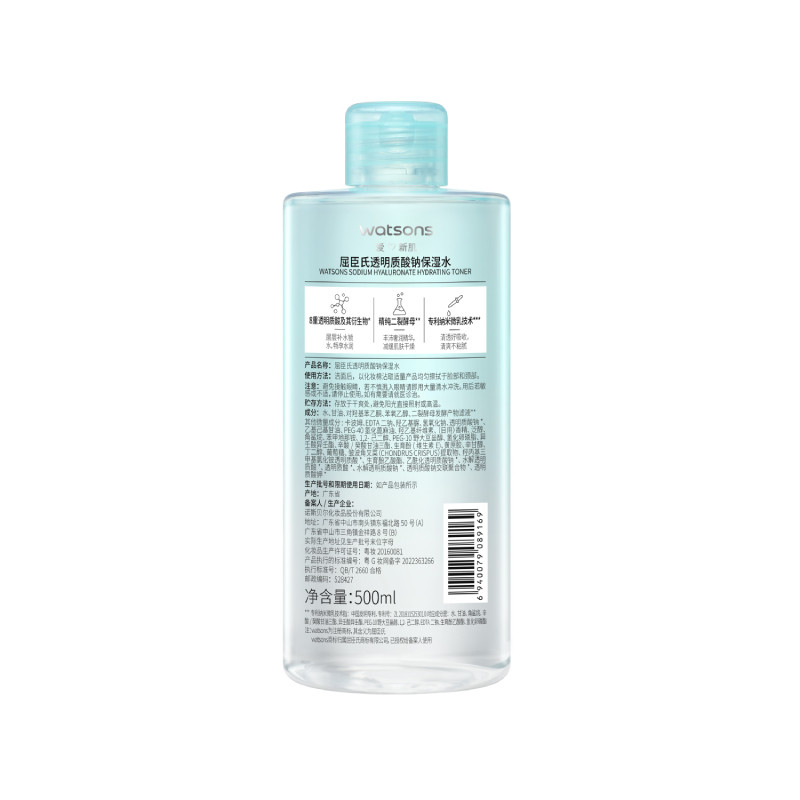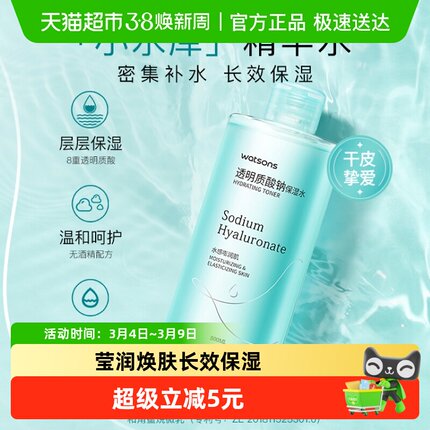 屈臣氏透明质酸钠保湿水爽肤水500ml补水化妆水温和湿敷