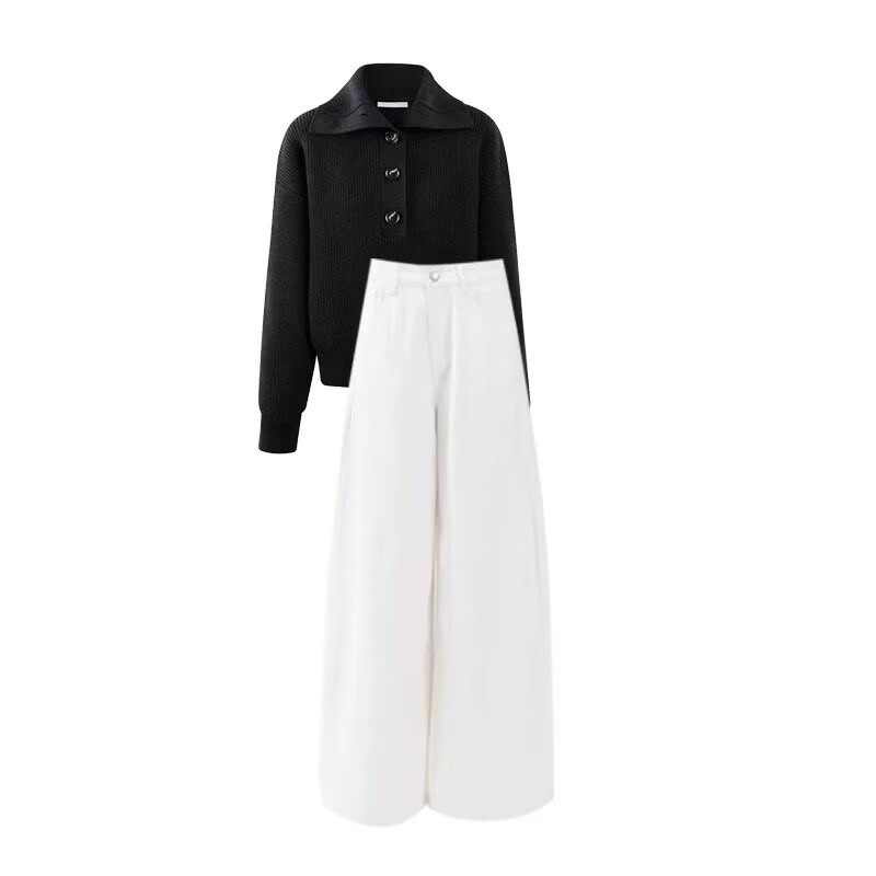 秋冬韩系小个子气质慵懒风针织毛衣开衫休闲裤时尚高级感两件套装