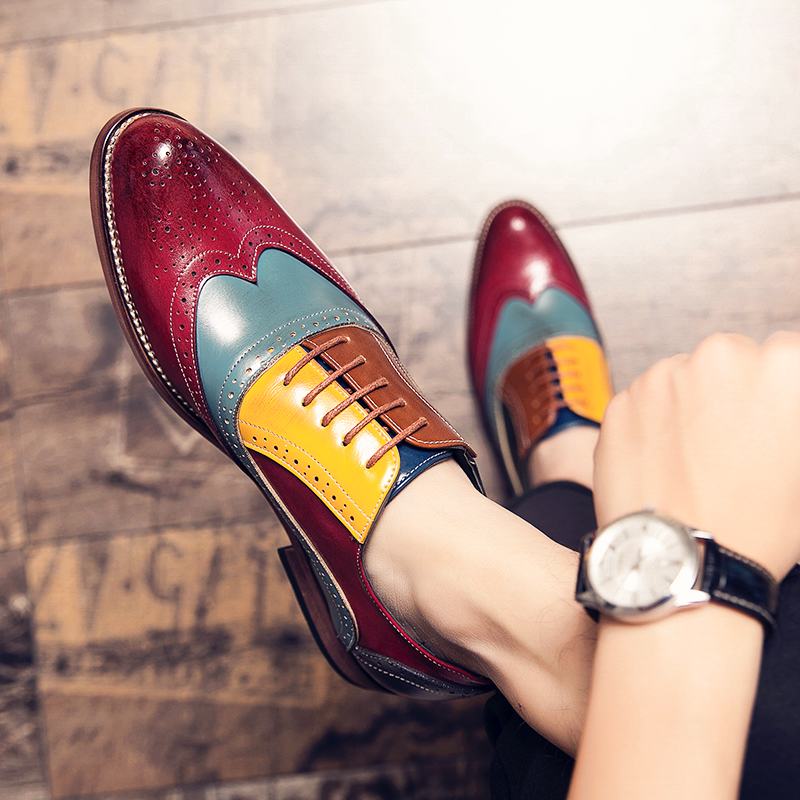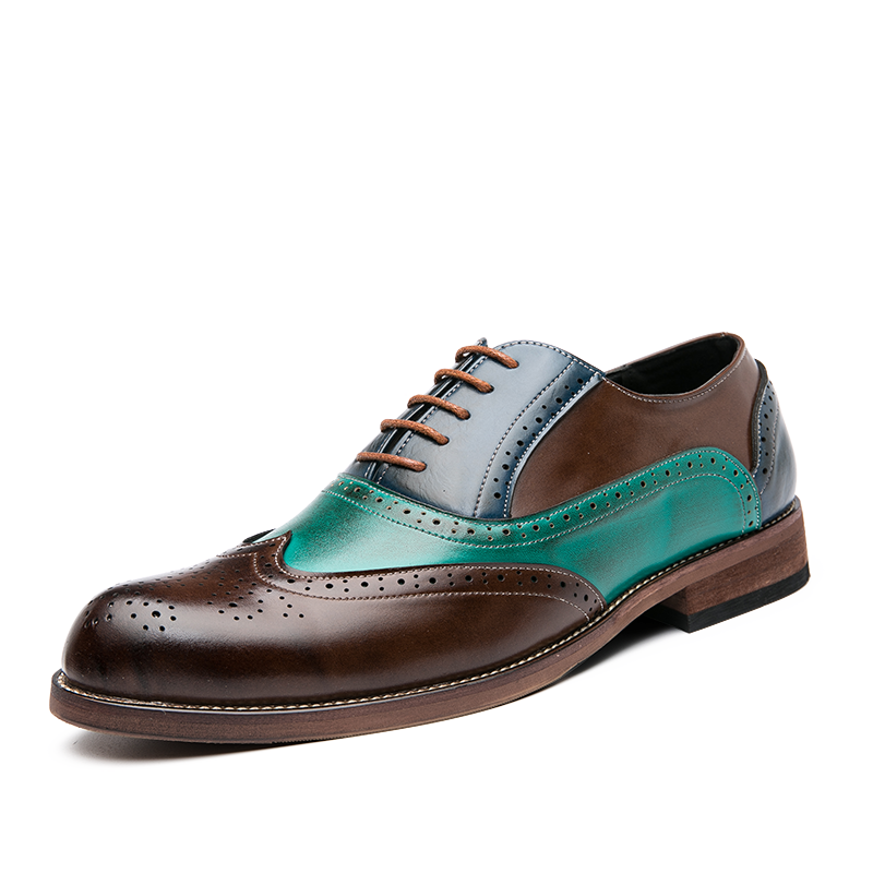 布洛克雕花英伦风拼色皮鞋巴洛克