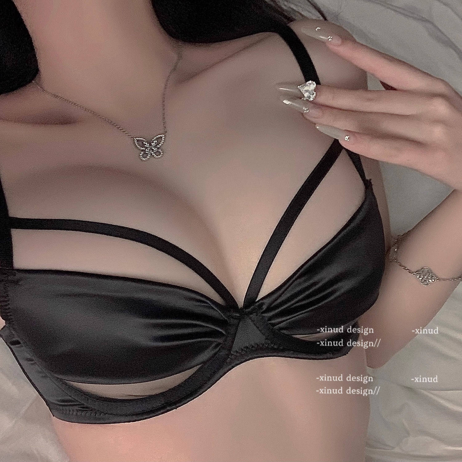 新款性感纯欲内衣女大胸显小收副乳防下垂超薄款有钢圈文胸罩套装