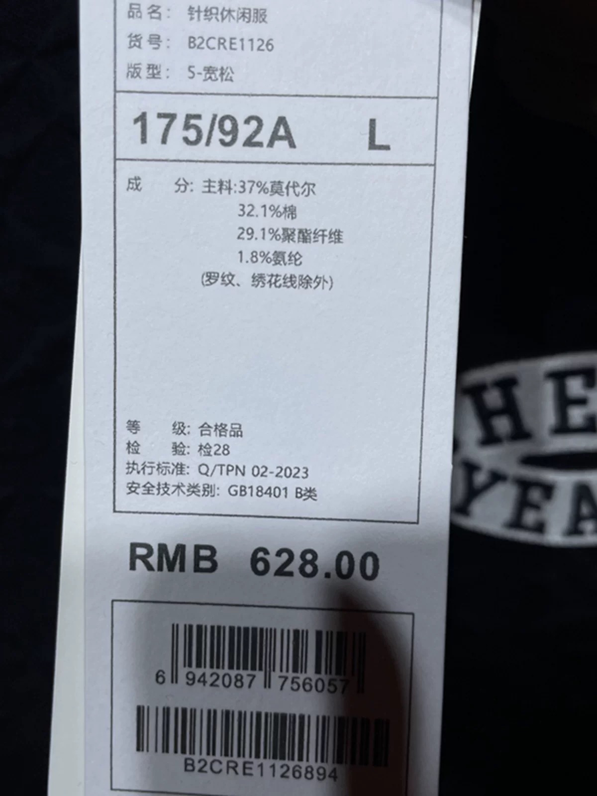 B2CRE1126 太平鸟男装2024秋季新款休闲宽松落肩圆领长袖卫衣外套