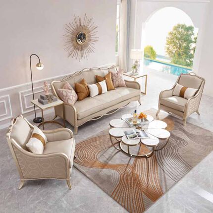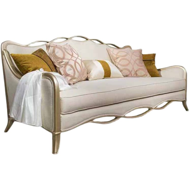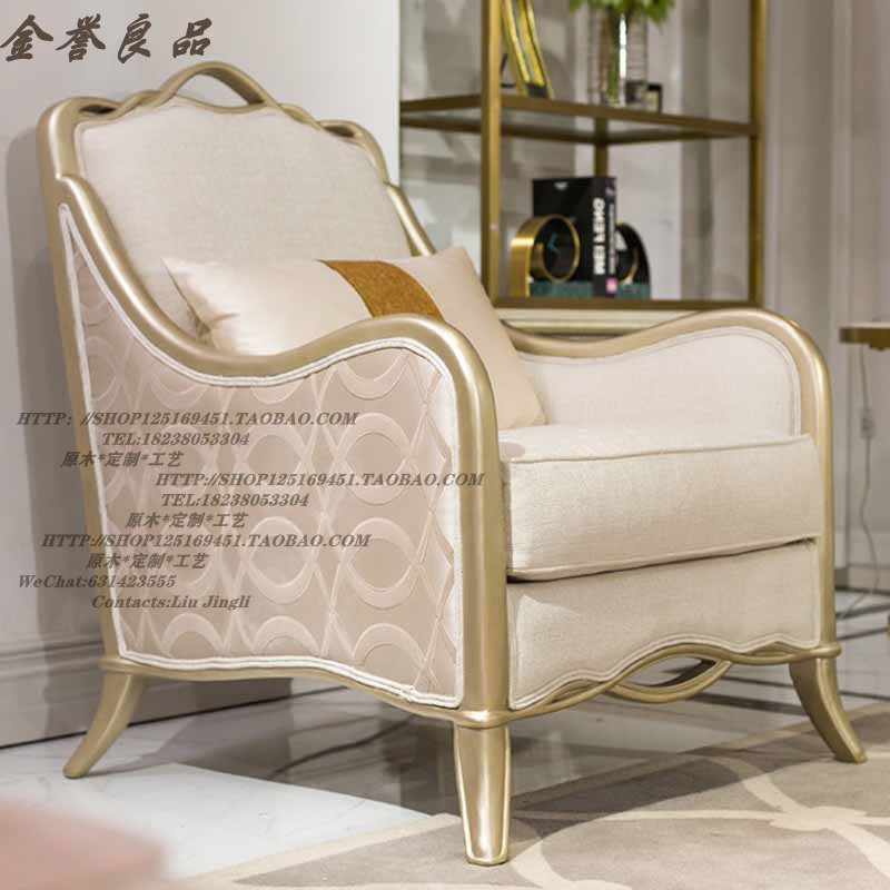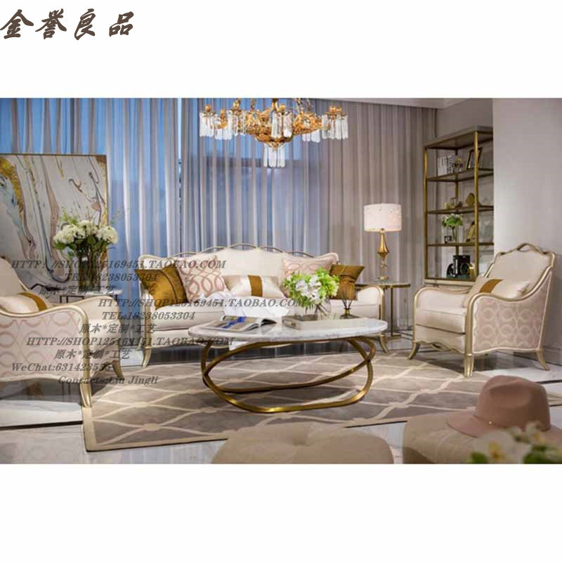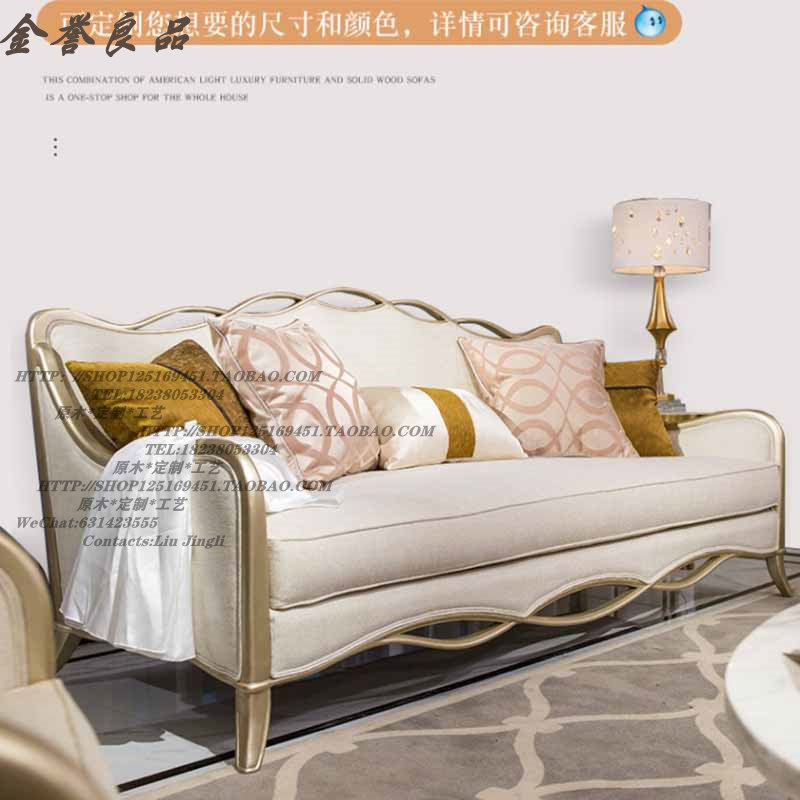 美式简约轻奢实木香槟金色实木布皮艺沙发欧式现代客厅沙发组合